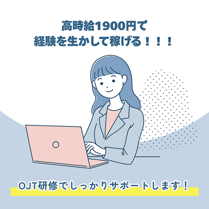 ★給与モデル 例)時給1,900円×実働7.5時間×月20日=月給約28.5万円