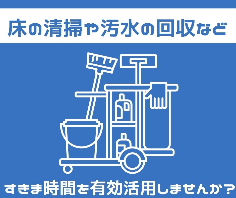 移動物の移動、床の洗浄、汚水の回収、モップ拭き、ワックス塗布、乾燥等、移動物の戻し