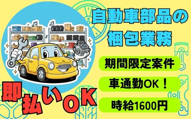 【厚木】時給1600円*即払いOK◎車部品の梱包作業