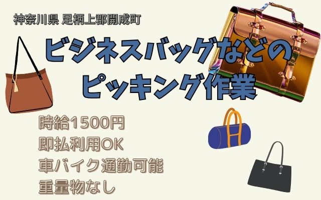 車OK【即払】時給1500円/バッグのピッキング・値付け作業