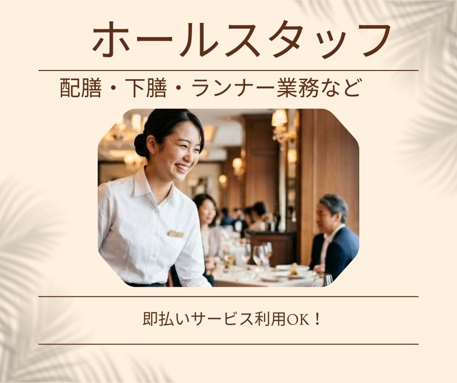 【お仕事内容】レストランでの配膳・下膳・ランナー業務