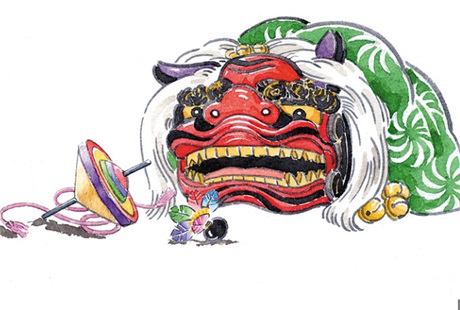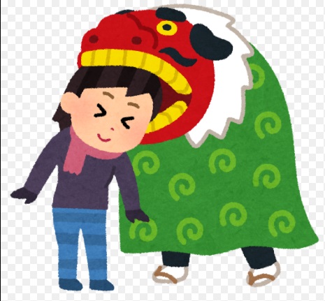 獅子舞の恰好をして、不定期に施設内を回り、お客様の頭を噛む