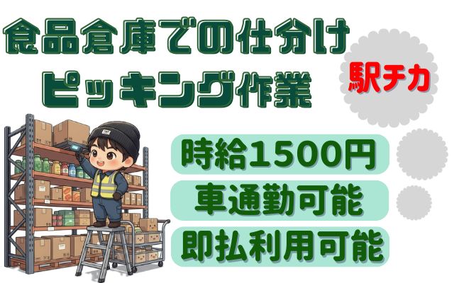 【横浜】駅チカ!即払可能!食品倉庫での仕分けなど♪