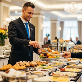 【詳細】ビュッフェ形式(おしぼりのお渡し、お席へのご案内、食器洗いなど)