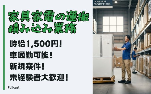 作業内容:家具、家電(冷蔵庫、洗濯機等)の運搬、トラック積込み業務