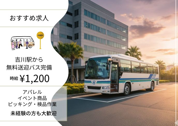 即払◎吉川駅より無料送迎!時1200+交500☆簡単軽作業♪