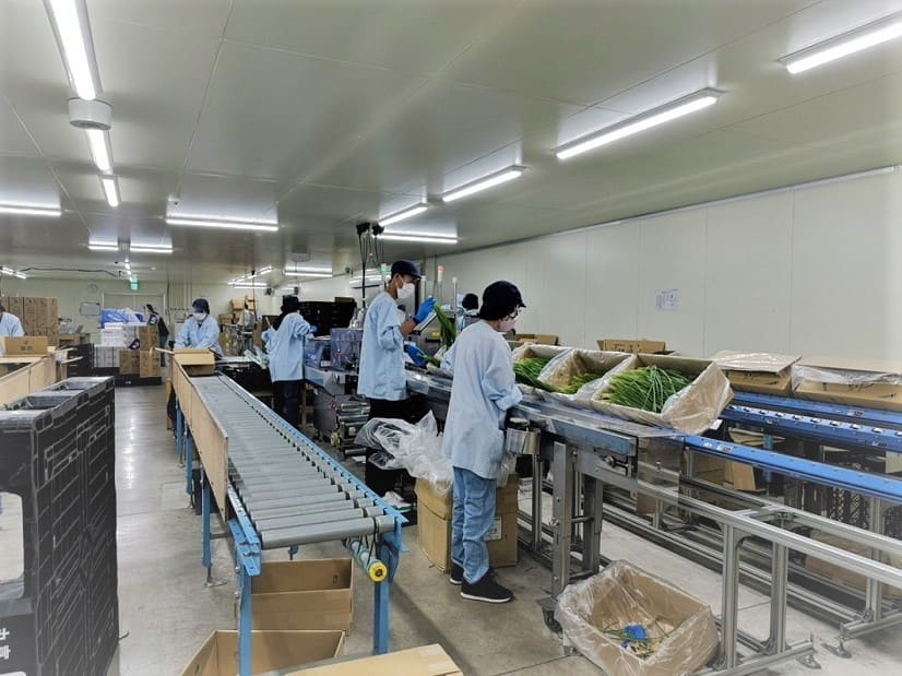 ◆青果物(ニラやナスなど)の包装ライン作業。