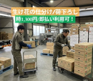 【高崎市】即払!1,300円/生花の荷卸し、仕分け作業!