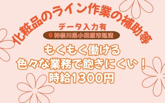 【鴨宮】時給1300円♪もくもく働ける!化粧品倉庫内作業