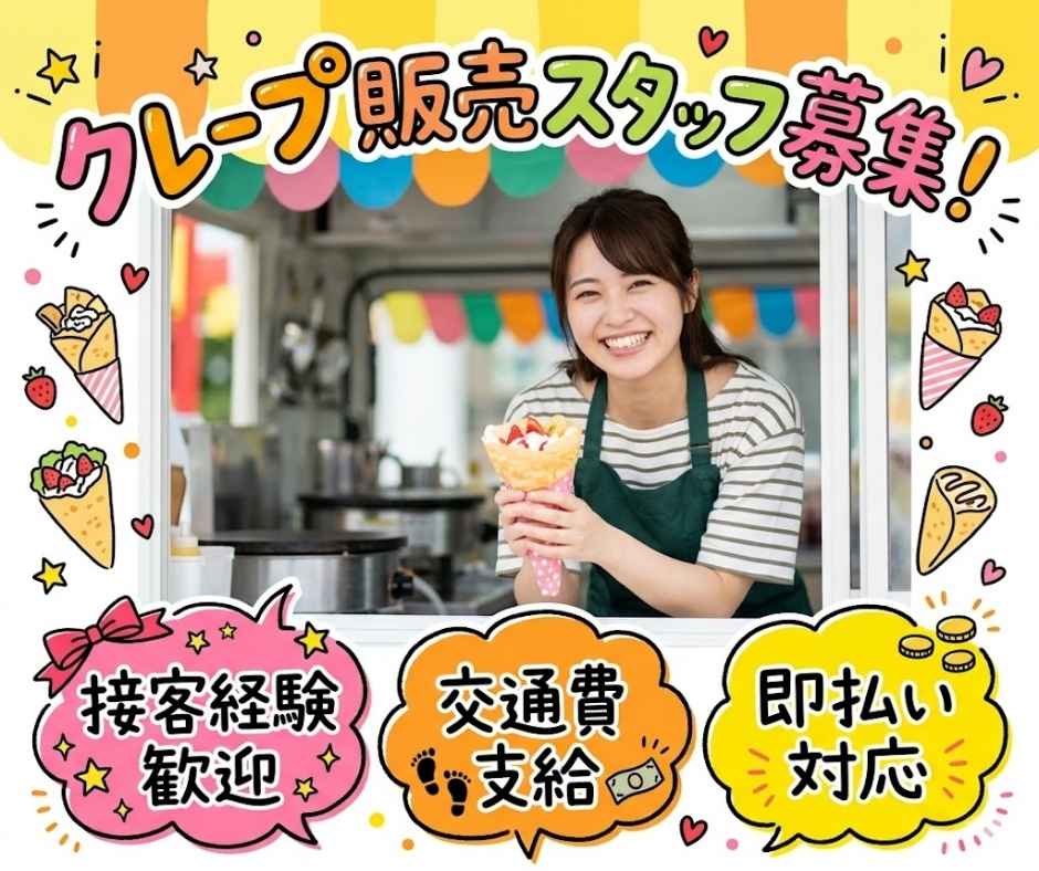 【時給1200/交通費1000円】クレープ販売のお仕事
