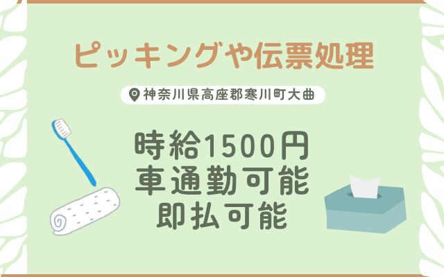 【寒川】ピッキング&事務案件*高時給1500円/即払いOK♪