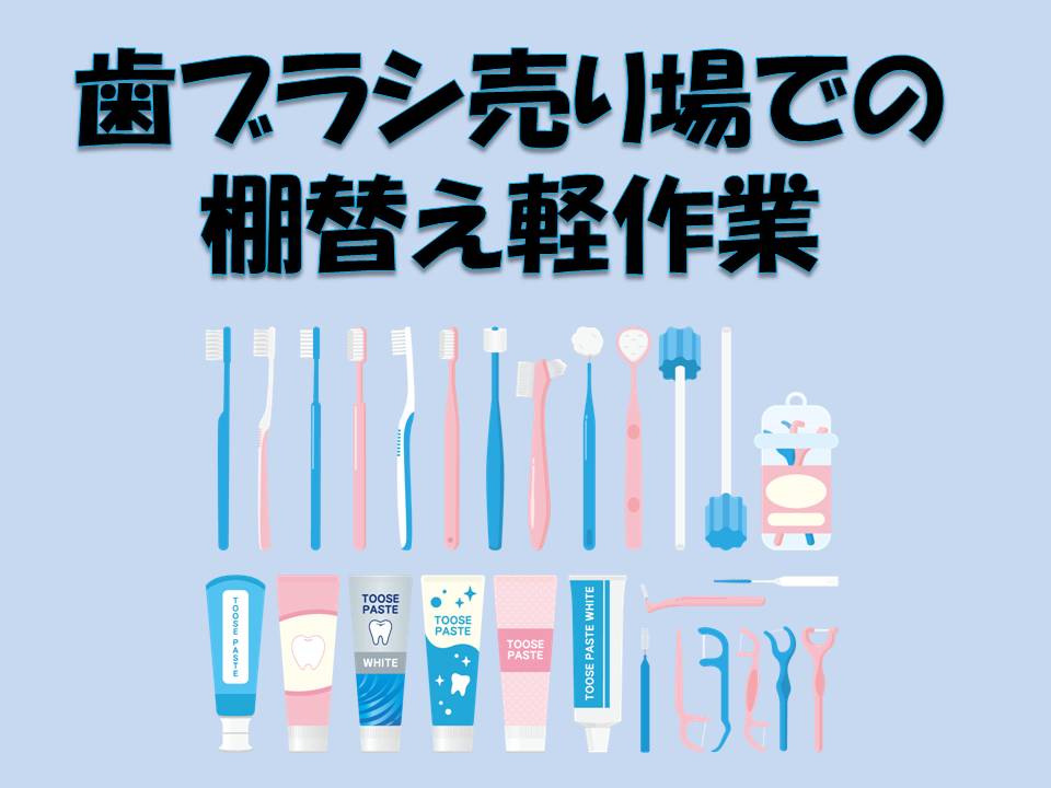 量販店にて、オーラルケア売場で歯ブラシ関連の棚替えの軽作業をお願いします