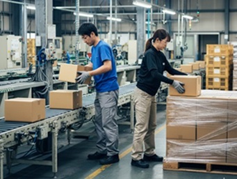 ラインで流れてきた段ボールを荷積みするだけの超簡単作業!