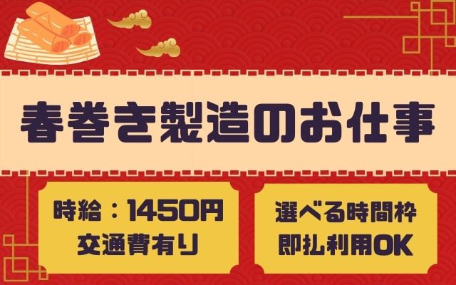 フルキャストでお仕事デビュー!!【藤沢】春巻き製造のお仕事♪