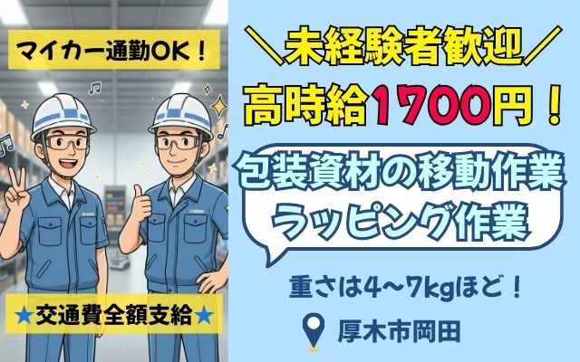 【厚木】高時給1700円*未経験者歓迎!!お弁当有/車OK