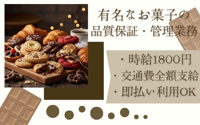 作業内容は、有名なお菓子の品質保証・管理業務☆☆