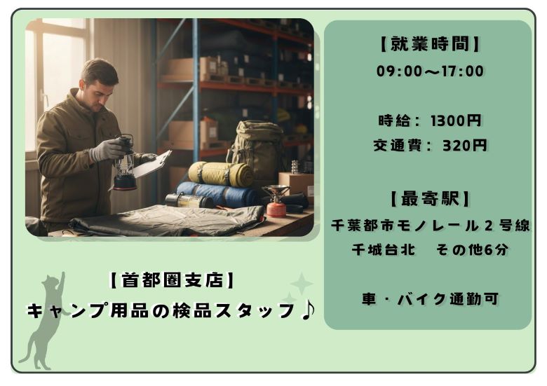【NEW】高時給1300円♪キャンプ用品の検品スタッフ