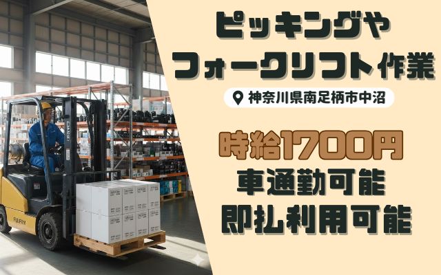 【南足柄市】時給1700円/ピッキング・フォークリフト業務♪
