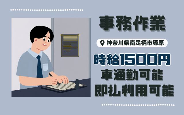 【南足柄市/事務作業】事務作業*車両通勤可能/即払OK