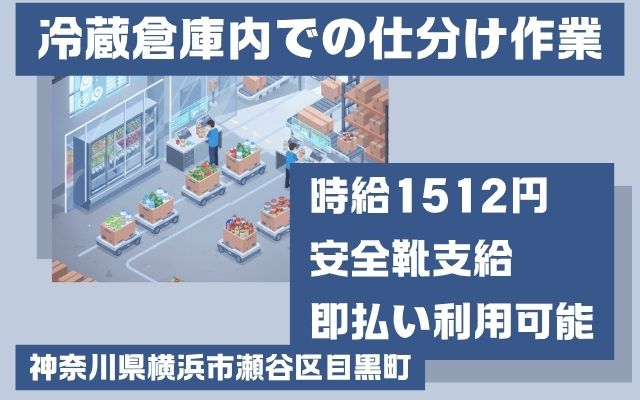 夕勤/短時間/冷蔵倉庫内での仕分け作業/時給1512円