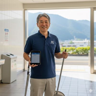 サービスエリア内を巡回しながら、トイレや施設内をピカピカにするお仕事です。