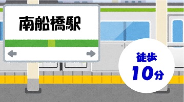 津田沼駅→(乗車時間:22分)→南船橋駅下車⇒徒歩10分