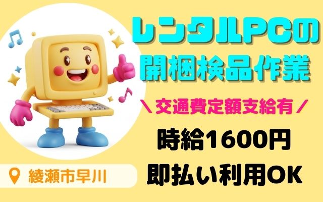 【未経験者歓迎♪】PCの開梱&検品作業/交通費支給有