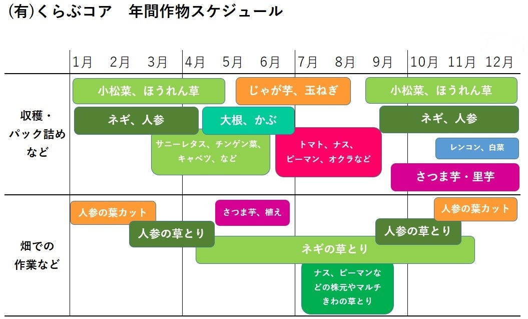 "ほうれん草、小松菜、チンゲン菜、かぶなど葉菜類をカマ、カッターなどを使って、または手で引き抜いて(かぶ)コンテナに詰めていっていただきます。除草作業は、カマや手で、畑の通路や、マルチの穴の中の草の引き抜き作業を行っていただきます。(20品目ぐらい作っていますので、当日、別の作物や作業になる場合がありますが、ご了承いただける方、ご応募ください)