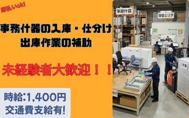 【即払】車OK/時1400円/海老名市/事務什器の入庫補助業務