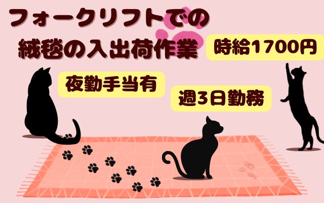 【横浜市】時給1700円+夜勤手当/絨毯の入出荷/週3日勤務