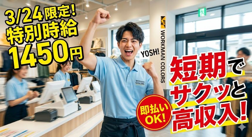 搬入・設営の初日はお祭り騒ぎ♪感謝を込めて、この日だけの「特別時給」を用意しました!短時間でサクッと稼げるし、即払いもOKだからお財布もハッピーに♪「1日だけなら…」という方も大歓迎!このチャンス、お見逃しなくっ☆