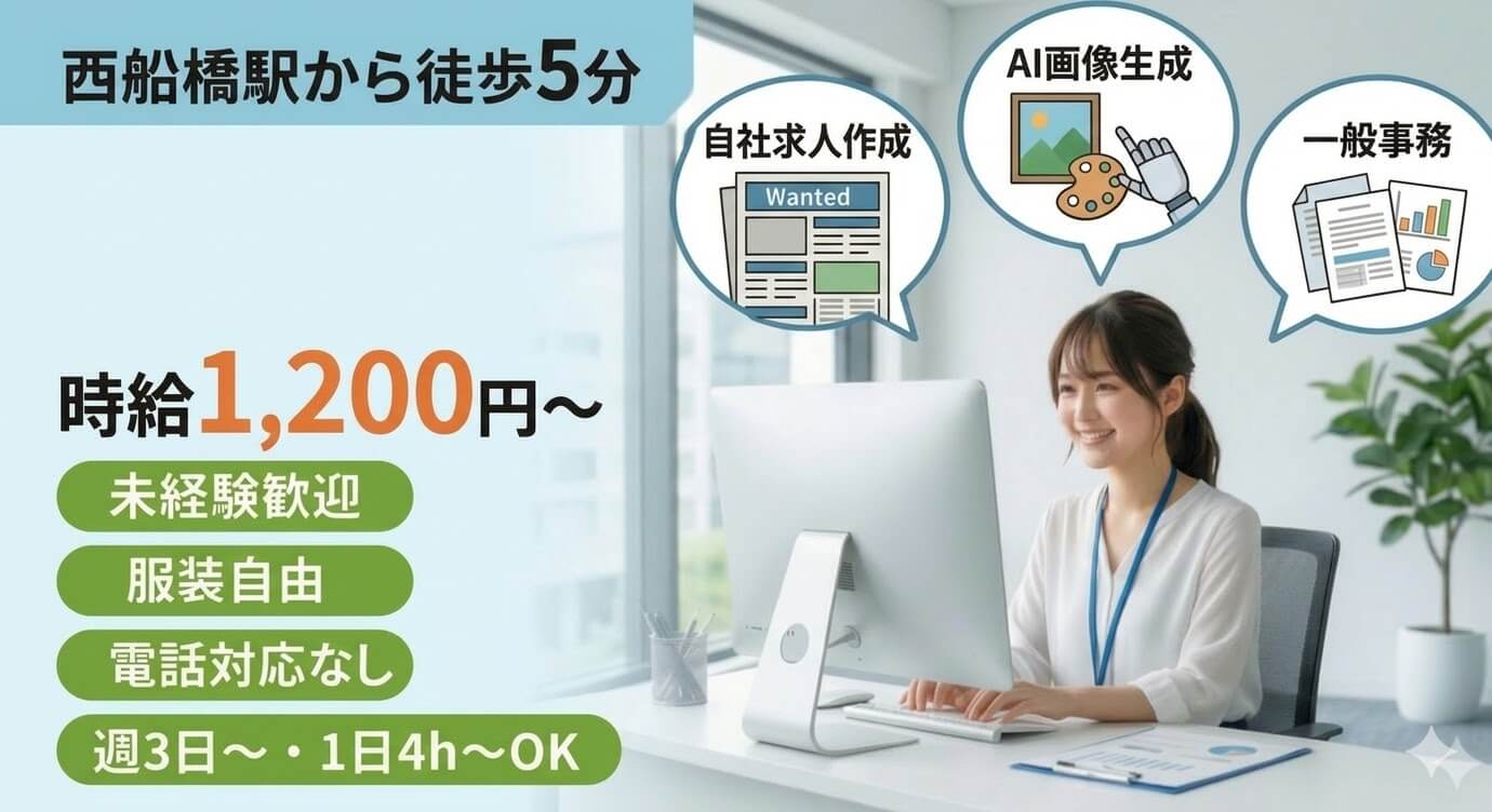 【西船橋】AI活用×求人作成事務!電話なし・週3日~OK
