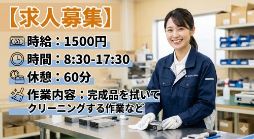 【募集中】アルミ製品の組立作業+完成品クリーニング作業