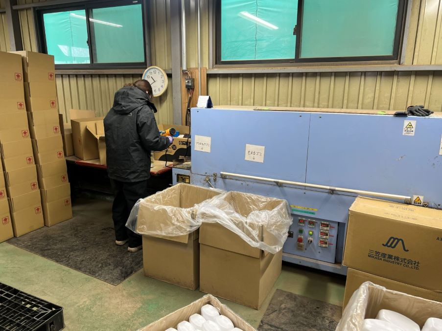 シュリンク作業:製品を熱収縮フィルムで包装します。機械操作が中心で、慣れれば手際よく作業できます。