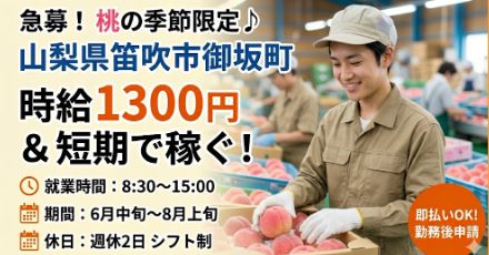 笛吹市【月15万】夏限定!共撰所でアクティブワーク