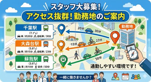 【交通手段】蘇我駅より車で約10分、自転車で約15分、徒歩で約46分