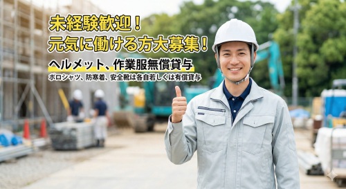 服装:『ヘルメット、作業服無償貸与』、『ポロシャツ、防寒着、安全靴は各自若しくは有償貸与』