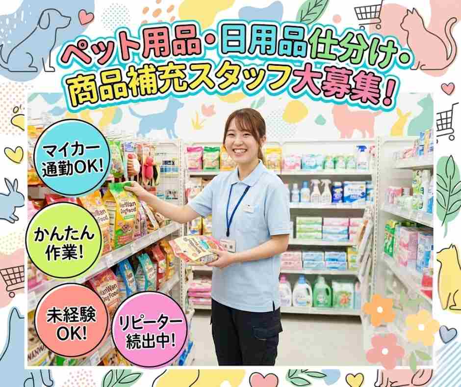 【作業内容】ペット用品・日用品仕分け・商品補充作業