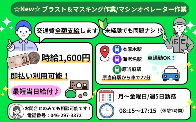 未経験歓迎 経験者歓迎 ブラスト作業 マスキング作業 梱包作業 マシンオペレーター作業