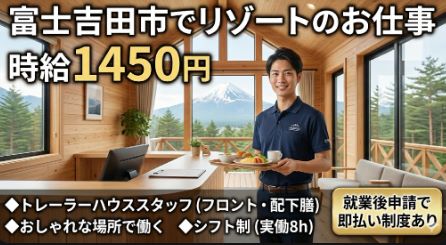富士吉田【月24万】話題の宿泊施設で受付&サービス