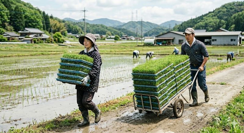 本格的な田植えに向けた準備のお手伝いをお願いします。