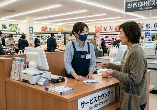 スーパーマーケット店でのレジ業務