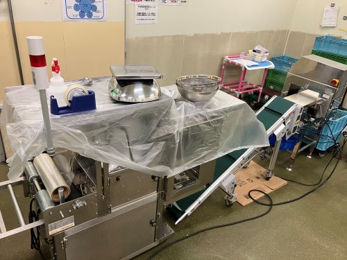 お弁当の盛り付けライン作業。