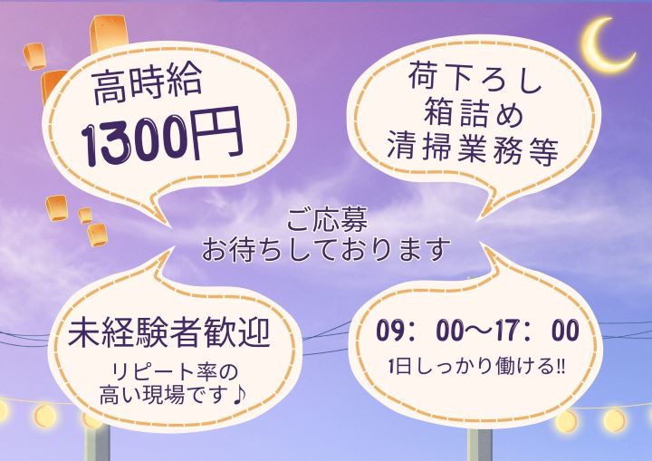 時給1300円★原料荷下ろし・箱詰め・積み替え作業など