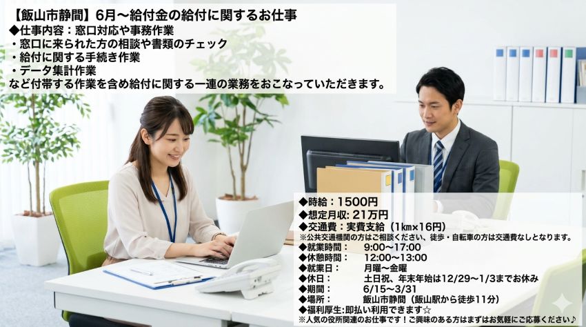 飯山市:時給1500円6月~給付金に関する窓口・事務