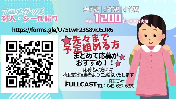 1日のみの短期アルバイト、1ヵ月以上の派遣のお仕事、埼玉県でのお仕事を探すなら、フルキャスト(fullcast)が運営するキャストポータルにお任せ下さい!