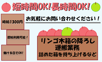 りんご゙木箱の積み上げ/時給1400交通費100日払い