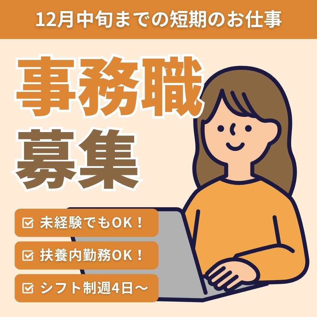 ★扶養内OK★12月までの限定!事務のお仕事