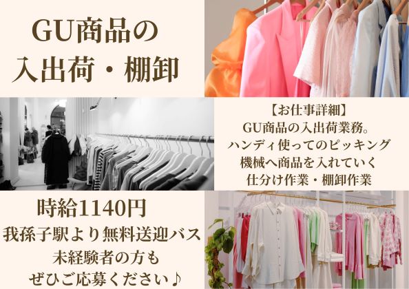 我孫子駅から無料送迎!GU商品の倉庫で軽作業デビュー