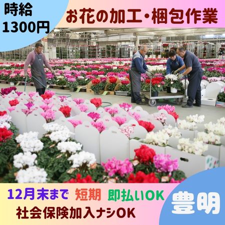 年末まで短期【豊明駅スグ/週3OK】花の加工・仕分・梱包
